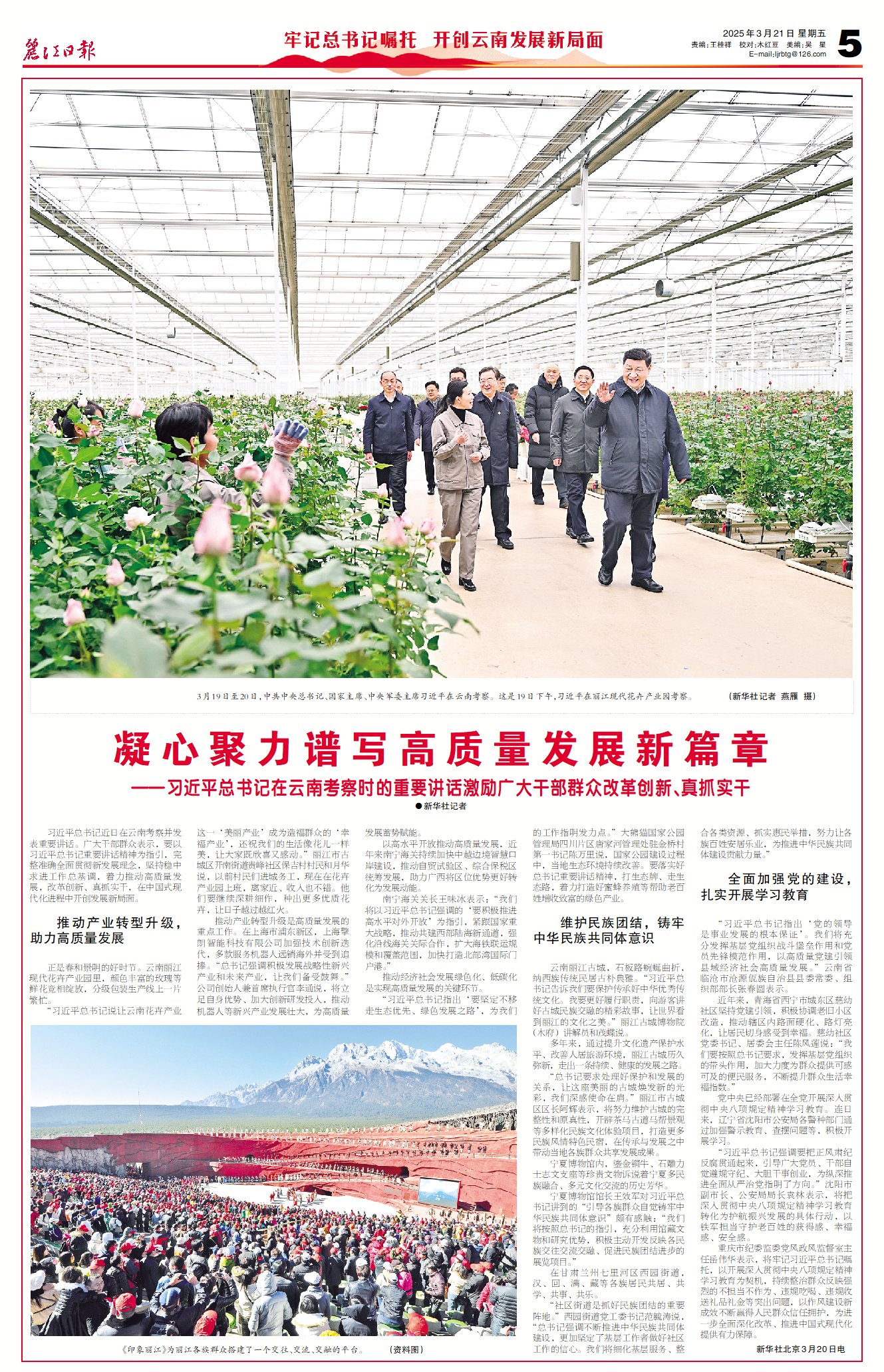 3月19日至20日,中共中央总书记、国家主席、中央军委主席习近平在云南考察。这是19日下午,习近平在丽江现代花卉产业园考察。 (新华社记者 燕雁 摄)