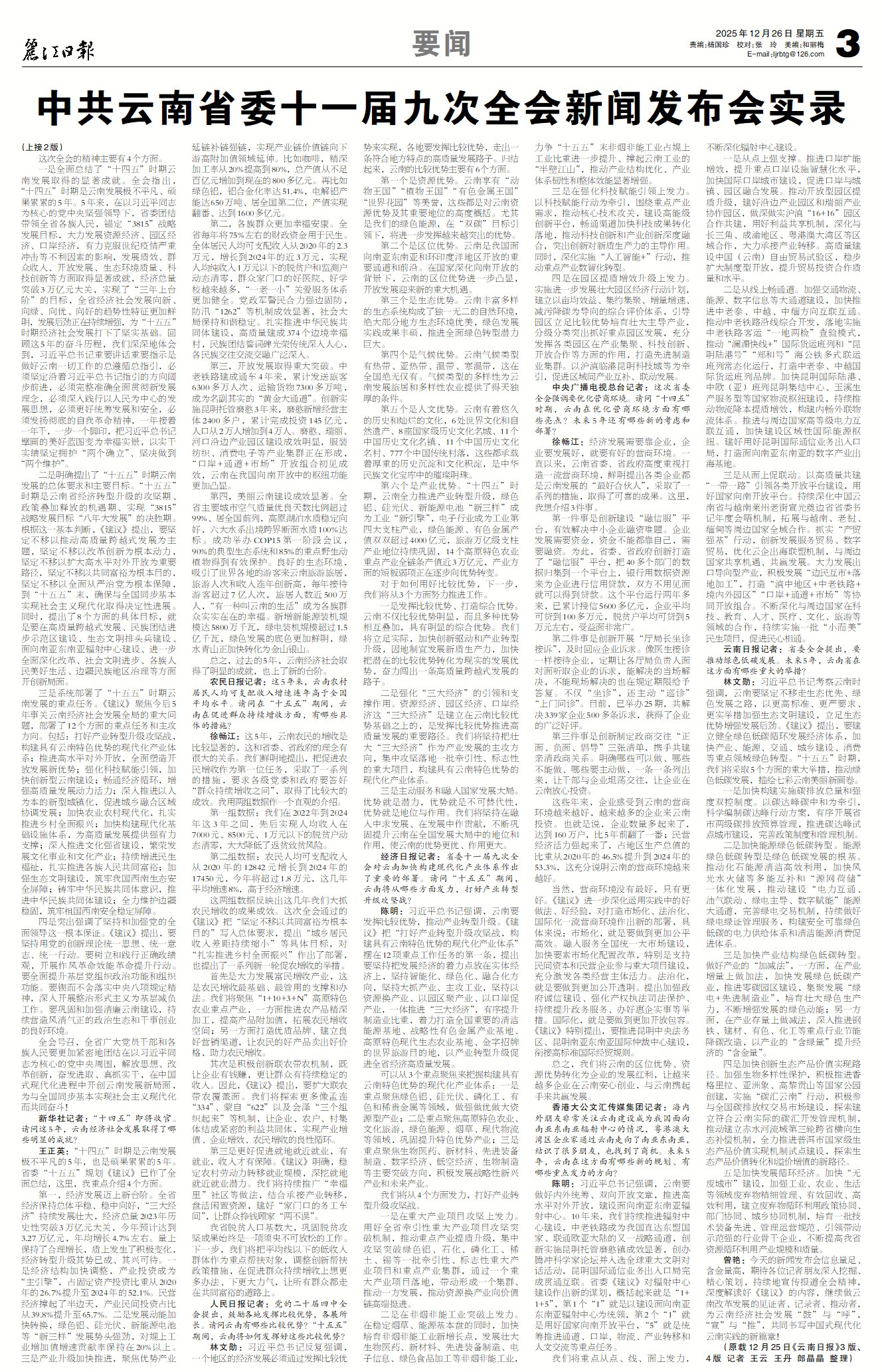 (原载12月25日《云南日报》3版、4版 记者 王云 王丹 郎晶晶 整理)