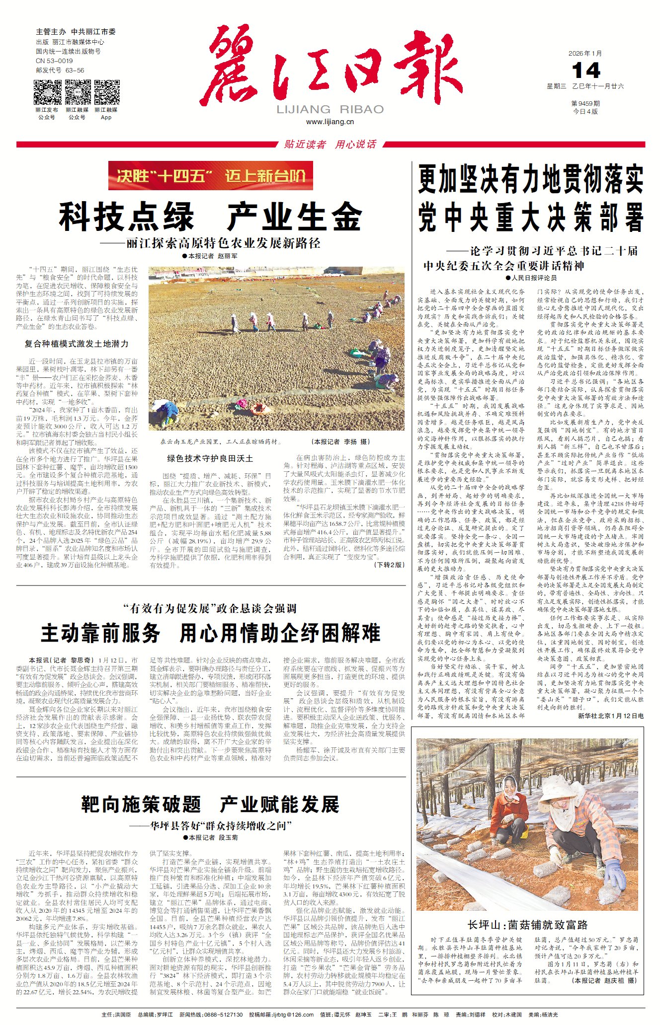 “十四五”期间,丽江围绕“生态优先”与“粮食安全”的时代命题,以科技为笔,在促进农民增收、保障粮食安全与保护生态环境之间,找到了可持续发展的平衡点,通过一系列创新项目的实施,探索出一条具有高原特色的绿色农业发展新路径,在绿水青山间书写了“科技点绿、产业生金”的生态农业答卷。