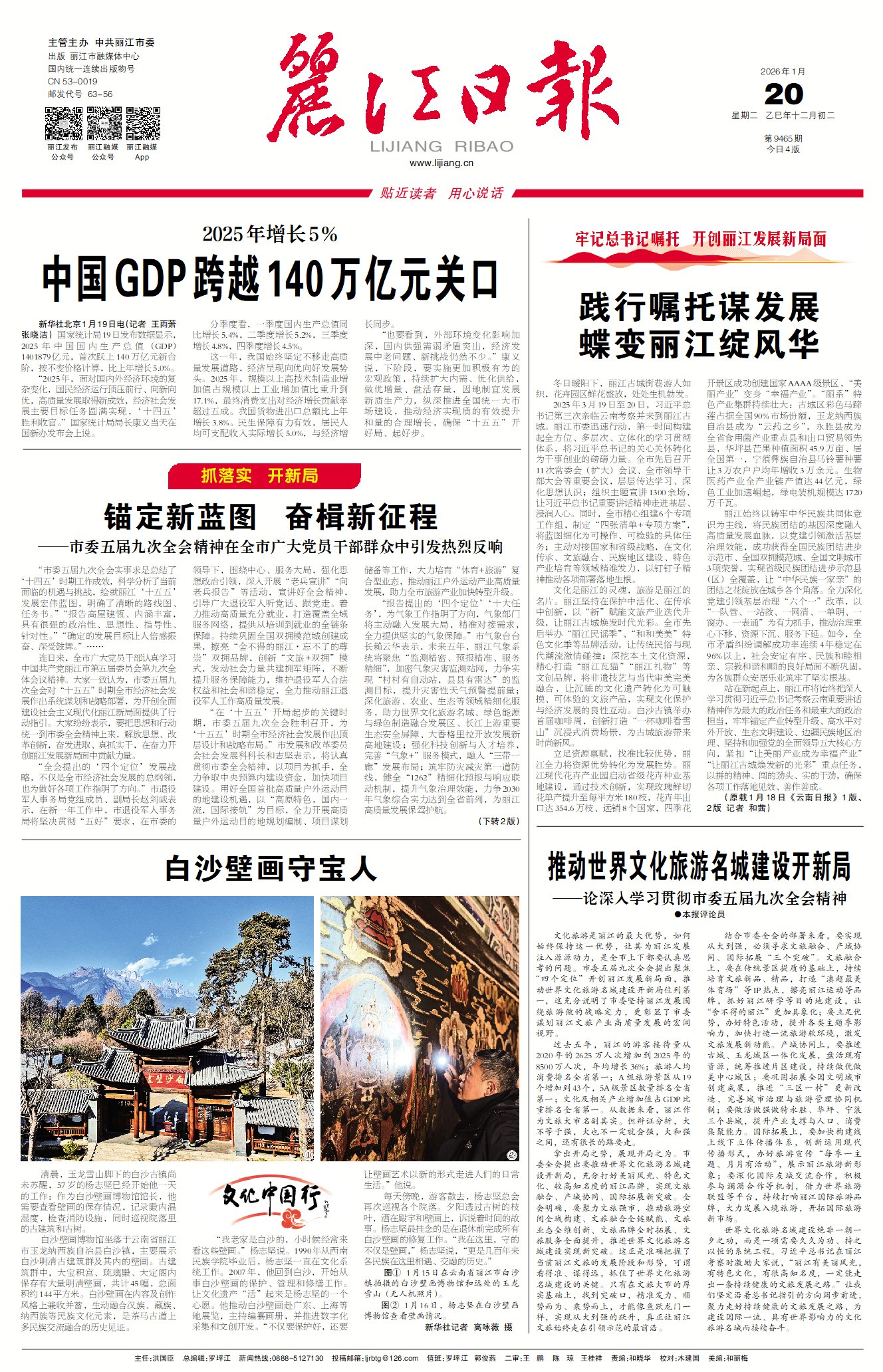 文化旅游是丽江的最大优势,如何始终保持这一优势,让其为丽江发展注入源源动力,是全市上下都要认真思考的问题。市委五届九次全会提出聚焦“四个定位”开创丽江发展新局面,推动世界文化旅游名城建设开新局位列第一,这充分说明了市委坚持丽江发展围绕旅游做的战略定力,更彰显了市委谋划丽江文旅产业高质量发展的宏阔视野。