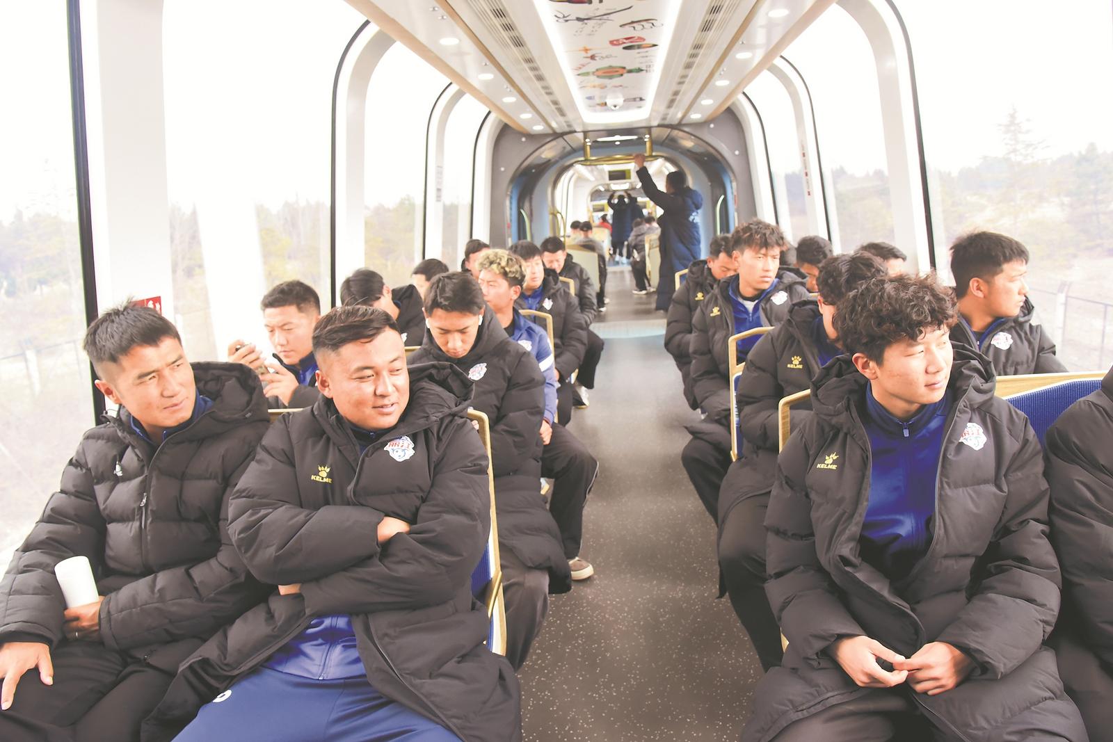 3月13日,丽江队队员乘坐玉龙雪山观光火车。