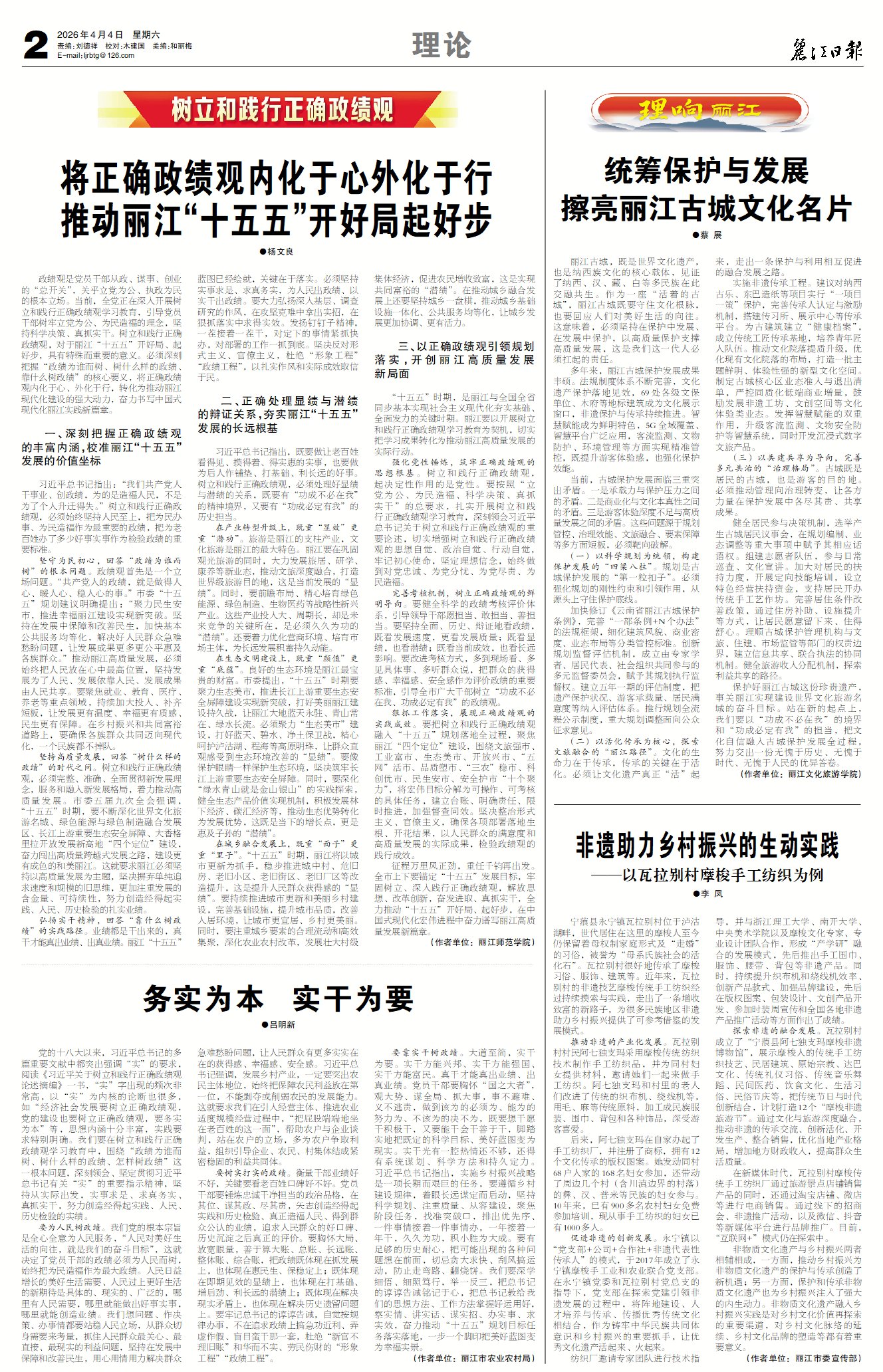 政绩观是党员干部从政、谋事、创业的“总开关”,关乎立党为公、执政为民的根本立场。当前,全党正在深入开展树立和践行正确政绩观学习教育,引导党员干部树牢立党为公、为民造福的理念,坚持科学决策、真抓实干。树立和践行正确政绩观,对于丽江“十五五”开好局、起好步,具有特殊而重要的意义。必须深刻把握“政绩为谁而树、树什么样的政绩、靠什么树政绩”的核心要义,将正确政绩观内化于心、外化于行,转化为推动丽江现代化建设的强大动力,奋力书写中国式现代化丽江实践新篇章。