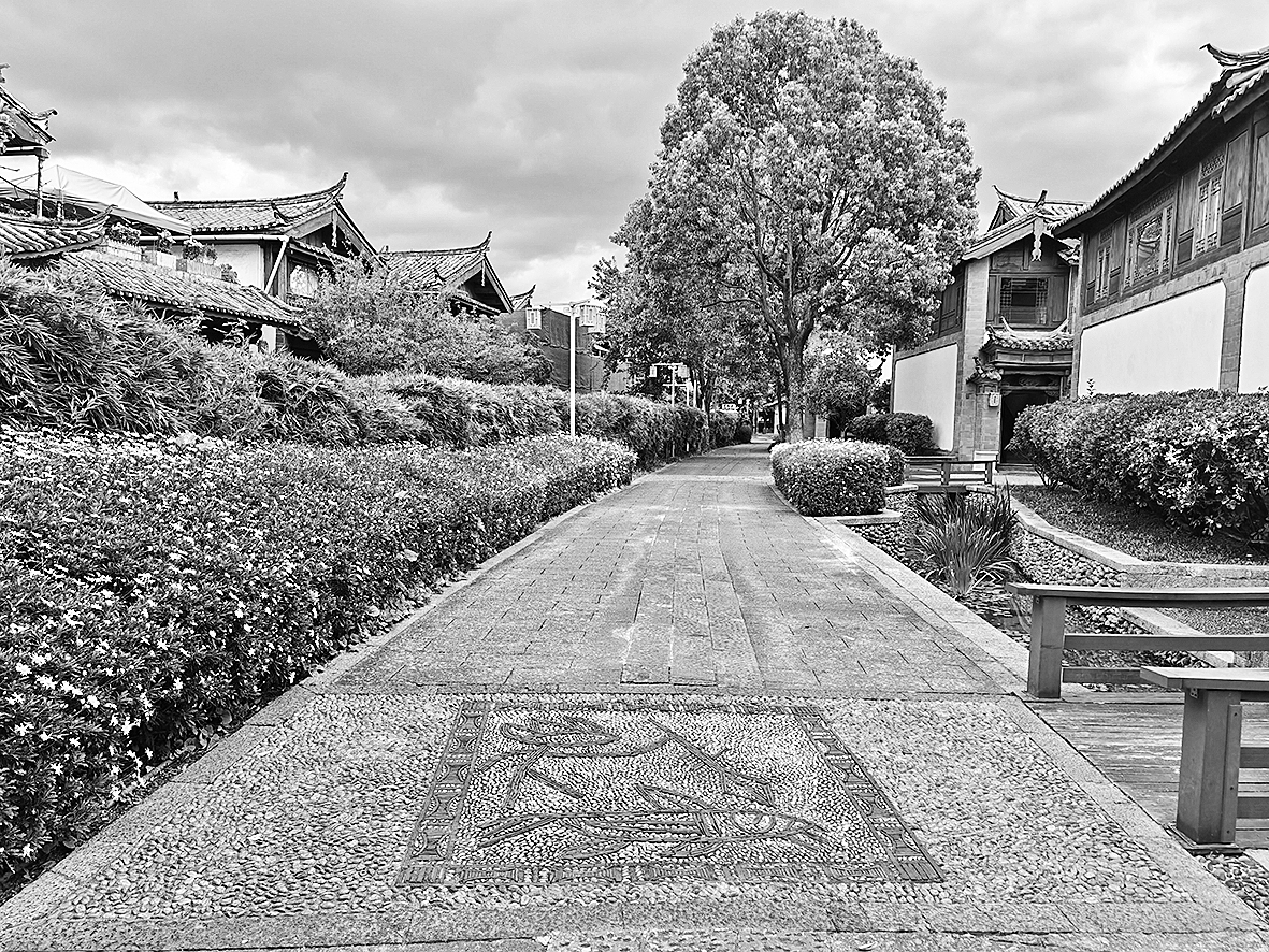 进入酒店园区,纳西族民居风格院落,四合院飞檐斗拱、东巴文绘画、鹅卵石铺地、白墙青瓦,院落间花香草绿、垂柳飘拂、小桥流水,大水车、三眼井、龙潭花园、日月广场、茶马互市等主题性造景,颇具美感。在这里,一木一石、一砖一瓦,在自然的园林美景中,散发出浓厚的人文气息。