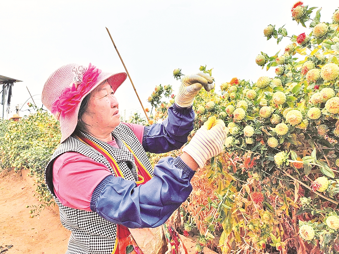 近日,种植户在采收红花。