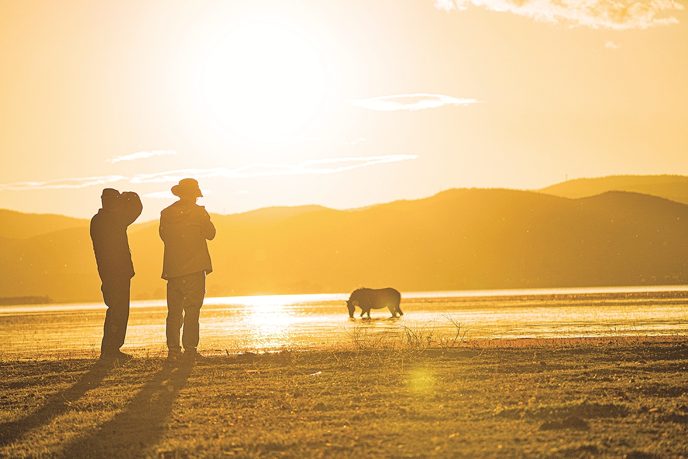 落日熔金,为湖面铺上一层粼粼波光。远山如黛,倒映水中。几匹马儿在浅滩悠然踱步,与潋滟湖光共同勾勒出和谐剪影。摄影爱好者举起相机,记录着水天相映的自然诗意,用镜头礼赞大自然的馈赠。