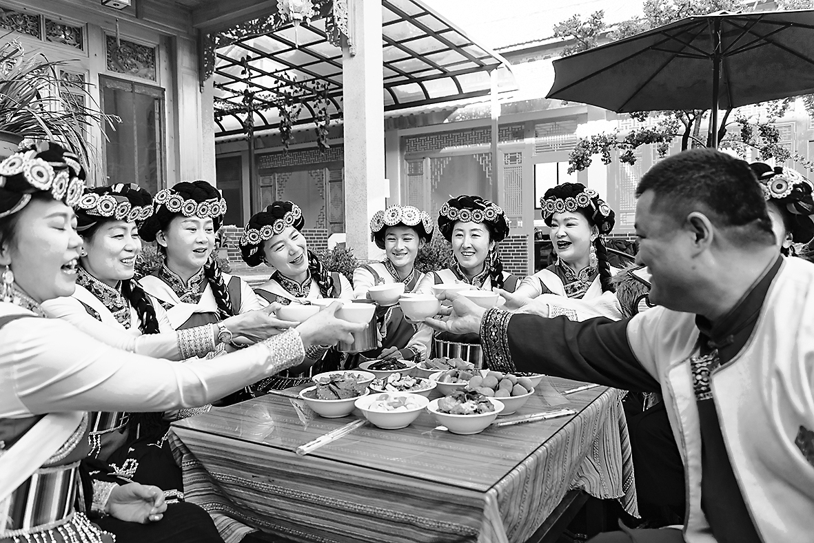 纳西族群众吃“杀猪饭”迎新春。 (通讯员 徐俊 摄)